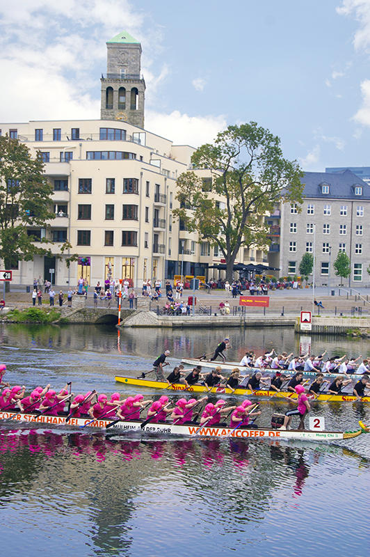 Mitarbeiter, Vorstand und Freunde der Mülheimer Kontakte nahmen zum zweiten mal am legendären Drachenbootrennen in Mülheim teil.